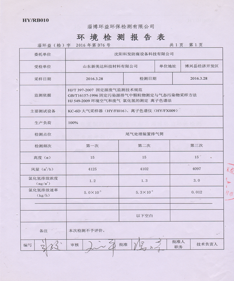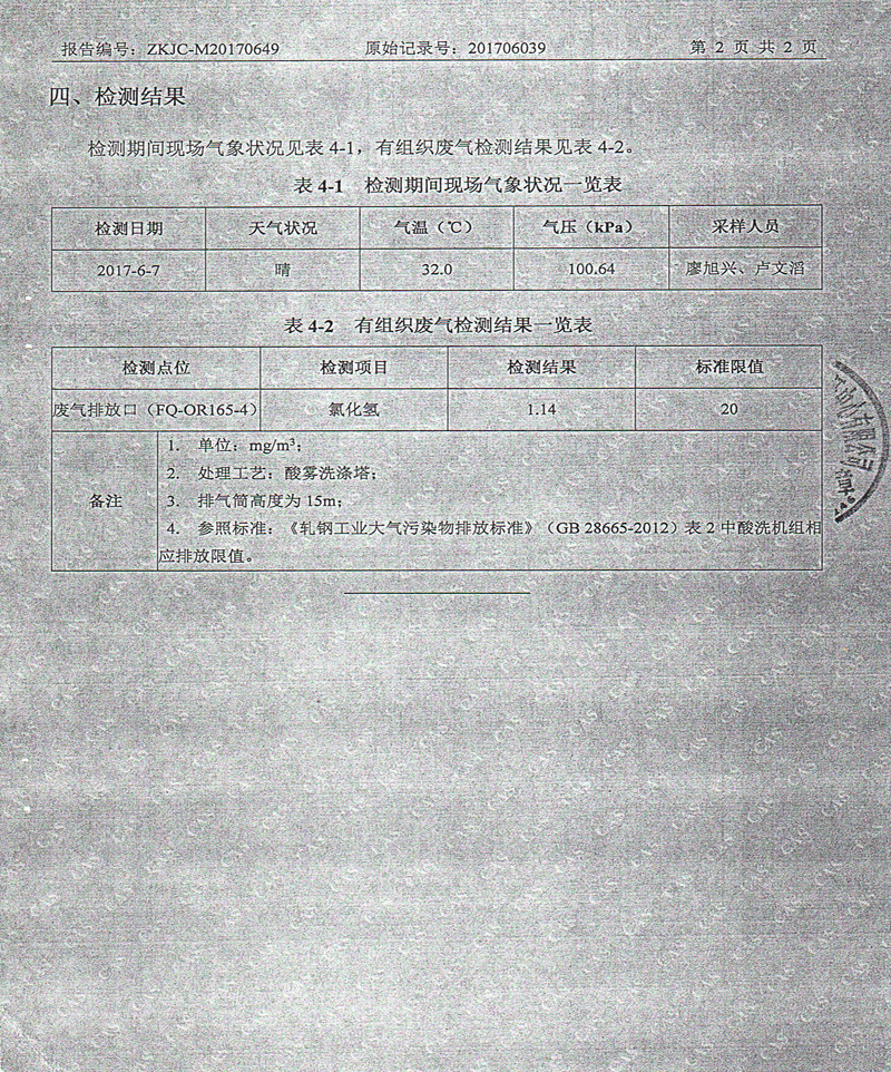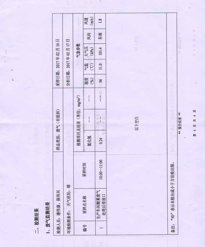 檢測(cè)結(jié)果中未檢測(cè)出HCL氣體,國(guó)家標(biāo)準(zhǔn)為小于30mg/m3