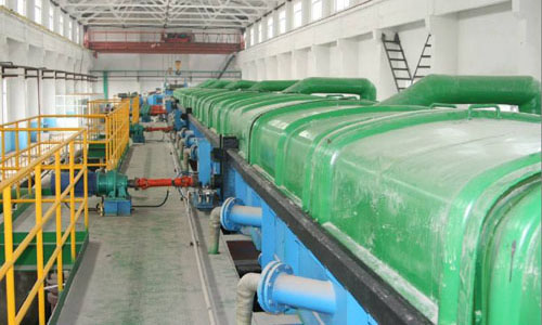 酸霧先進(jìn)入多級(jí)折流冷卻裝置進(jìn)行降溫,再進(jìn)入汽液分離器使酸霧從氣態(tài)變成液態(tài),剩余氣體進(jìn)入水膜吸收裝置,氣體從水膜裝置出來(lái)再進(jìn)入煙囪排出。